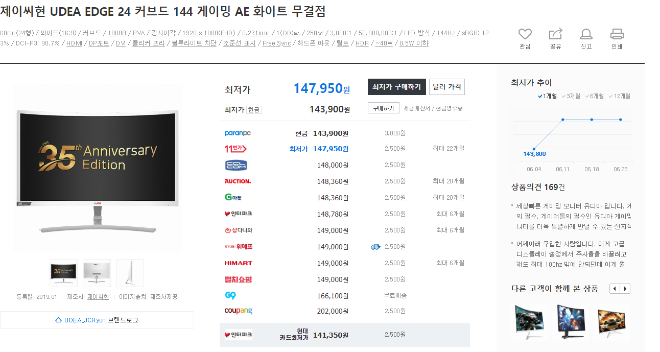 | 24인치 가성비 게이밍 모니터 추천 (제이씨현 UDEA EDGE 24 커브드 144 게이밍 AE 화이트 무결점) (0) | 2019.06.26 |
